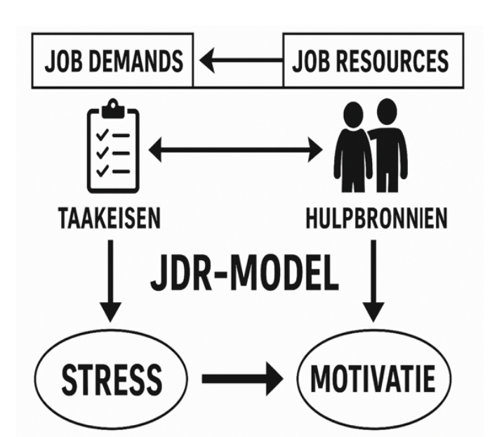 Hulpbronnen (job resources): aspecten van het werk die energie geven of helpen om doelen te bereiken, zoals steun van collega’s,